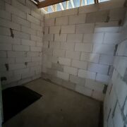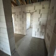 Стены - блок 300 мм, окна, двери - ПВХ, ламинированные снаружи в цвет кровли (70 мм, стеклопакет 42 мм, энергия), балки перекрытие - 200 мм, кровля - металлочерепица (подкровельное пространство - пароизоляция), балки обработаны антисептиком, предусмотрена вентиляция.