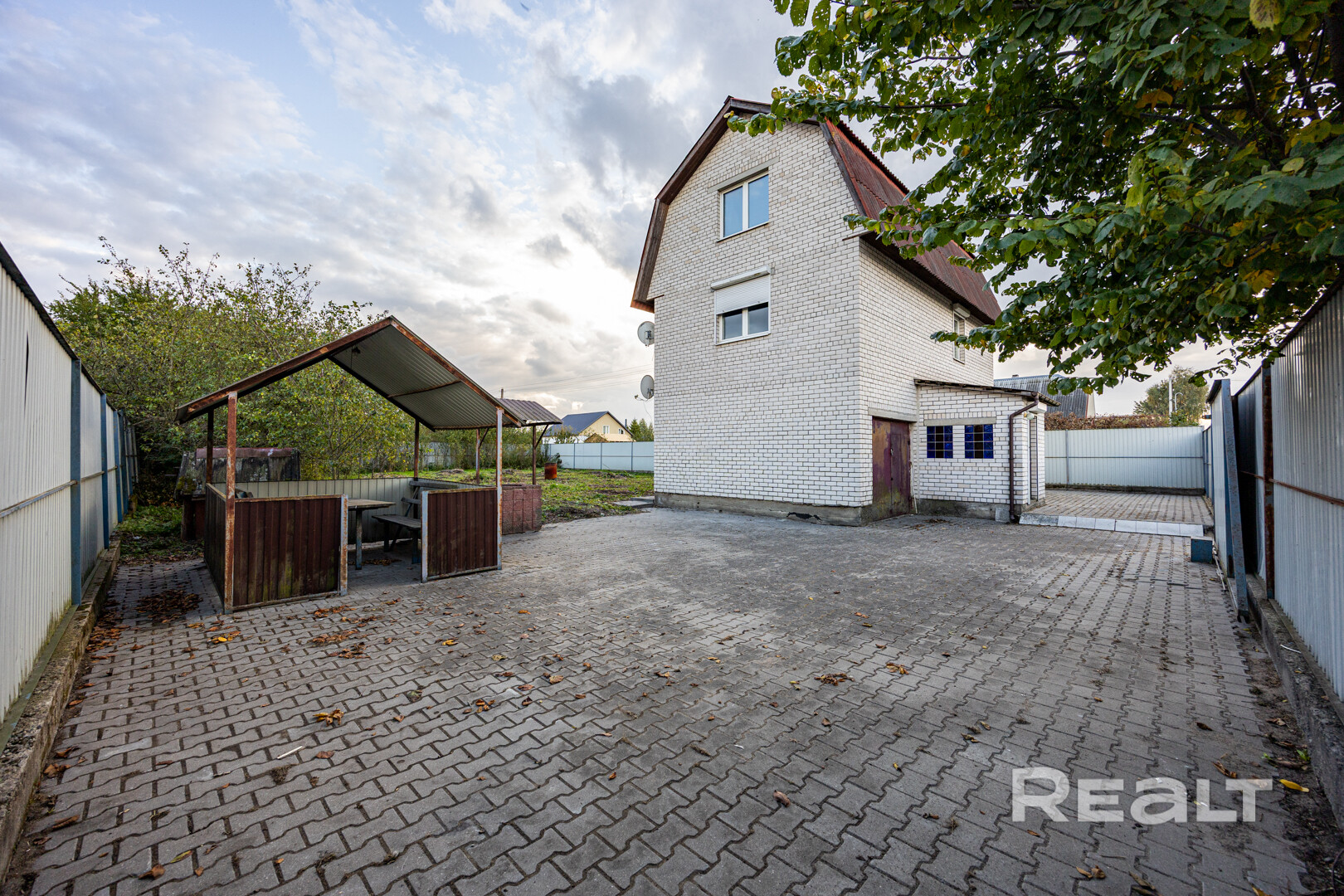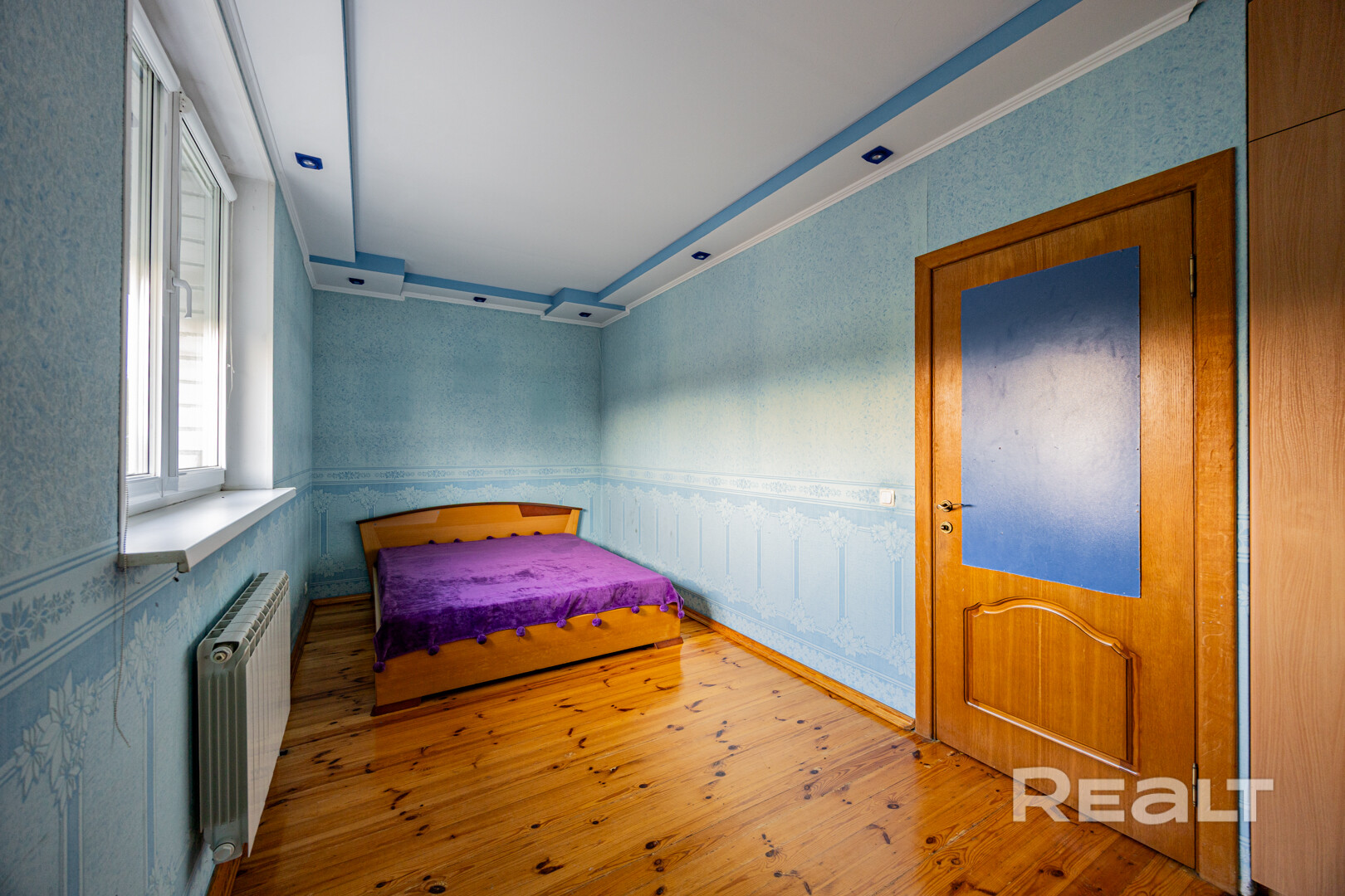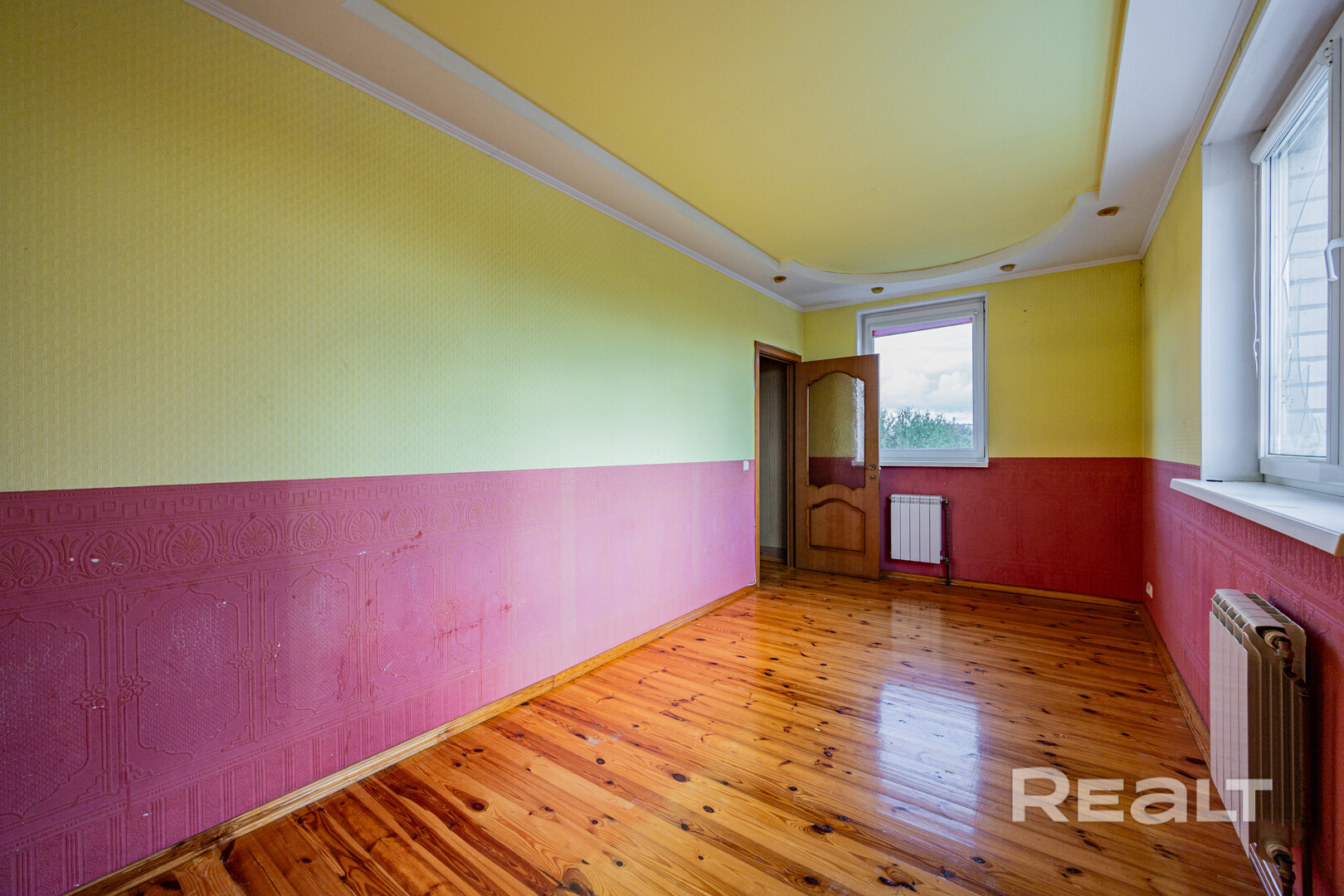 Трехэтажный дом с обычным ремонтом, состоящий из двух этажей и мансардного. Дом построен из блоков и обложен кирпичом. Уровни соединяются деревянными лестницами. Четыре жилые комнаты и просторная кухня, где вы сможете реализовать свои индивидуальные идеи по оформлению и расстановке мебели. Окна ПВХ. Потолки подвесные. Стены частично оклеены обоями, частично покрашены. Покрытие пола: кухня и санузел – плитка, остальные помещения - доска деревянная, покрытая лаком.