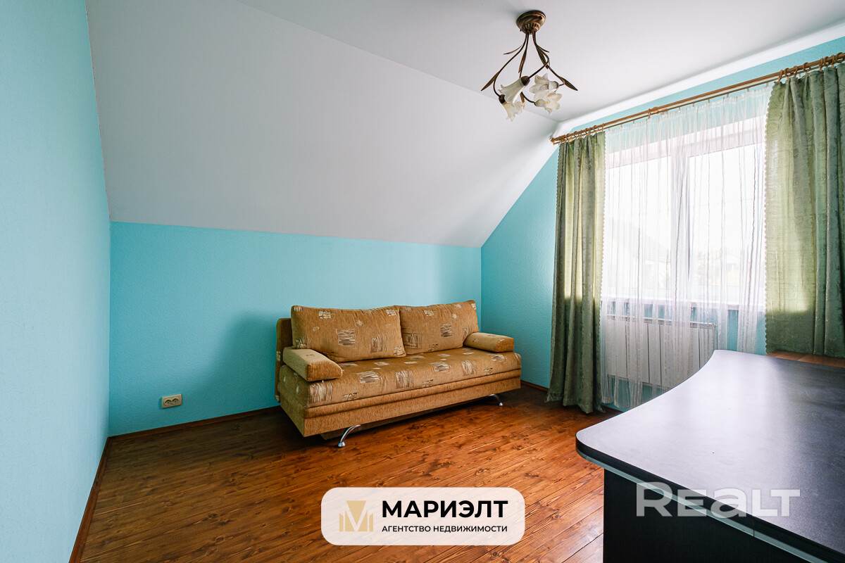Всё полностью готово для круглогодичного проживания. Дом оборудован газовым отоплением с теплыми полами, центральным водопроводом и местной канализацией. В доме высокоскоростной интернет и цифровое ТВ (Белтелеком). Первый этаж – кухня, гостевой санузел и просторная гостиная с камином - идеальное место для семейных вечеров и встреч с друзьями. На втором этаже три светлые комнаты и санузел. Имеется возможность обустройства игровой комнаты 38.2м2.
