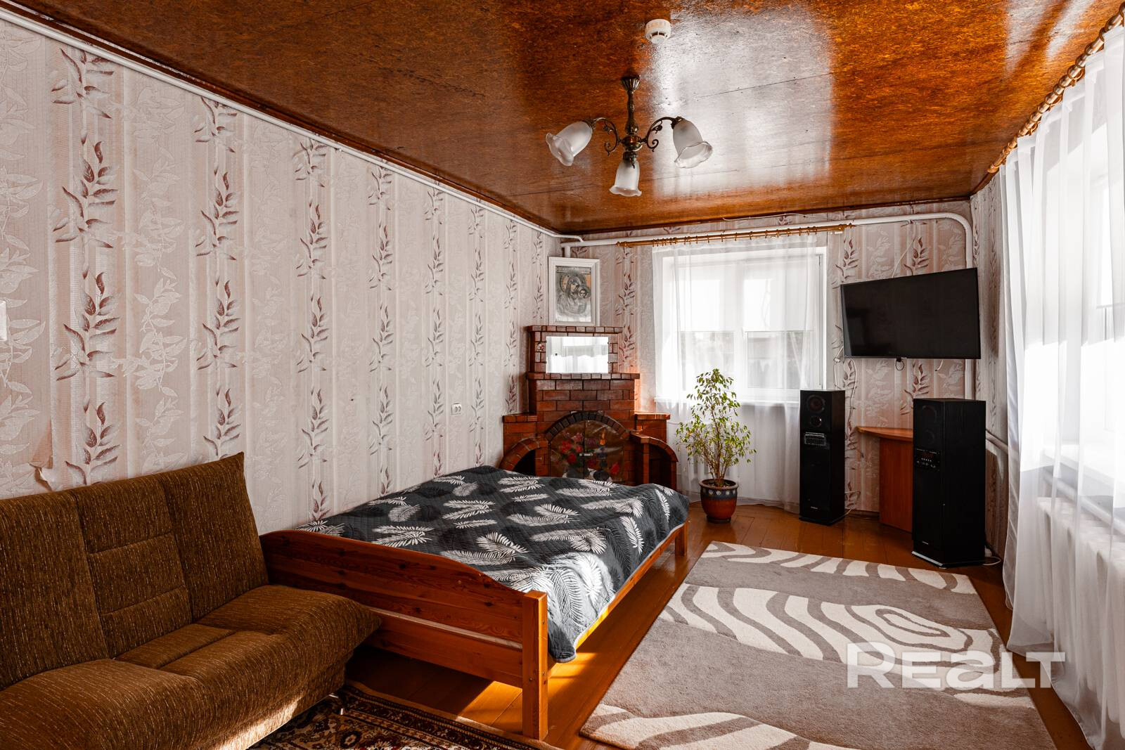 Дом 1990 года постройки, общей площадью 118.3 м2 по СНБ, с тремя светлыми жилыми комнатами (50.5 м2), в которых легко представить семейные вечера, тишину и тепло.