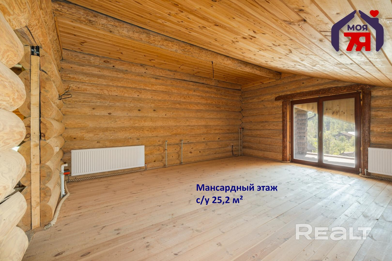 - Дом расположен в 43 км от МКАД по Логойскому направлению, до Логойска — всего 14 км. Остановка общественного транспорта — в 6 минутах ходьбы, что делает объект доступным и без автомобиля.