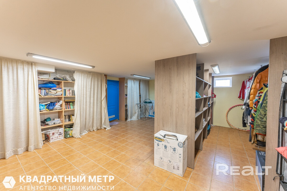 Цокольный этаж имеет отдельный вход, сан узел, постирочную, котельню, занимает площадь 120 квадратов.