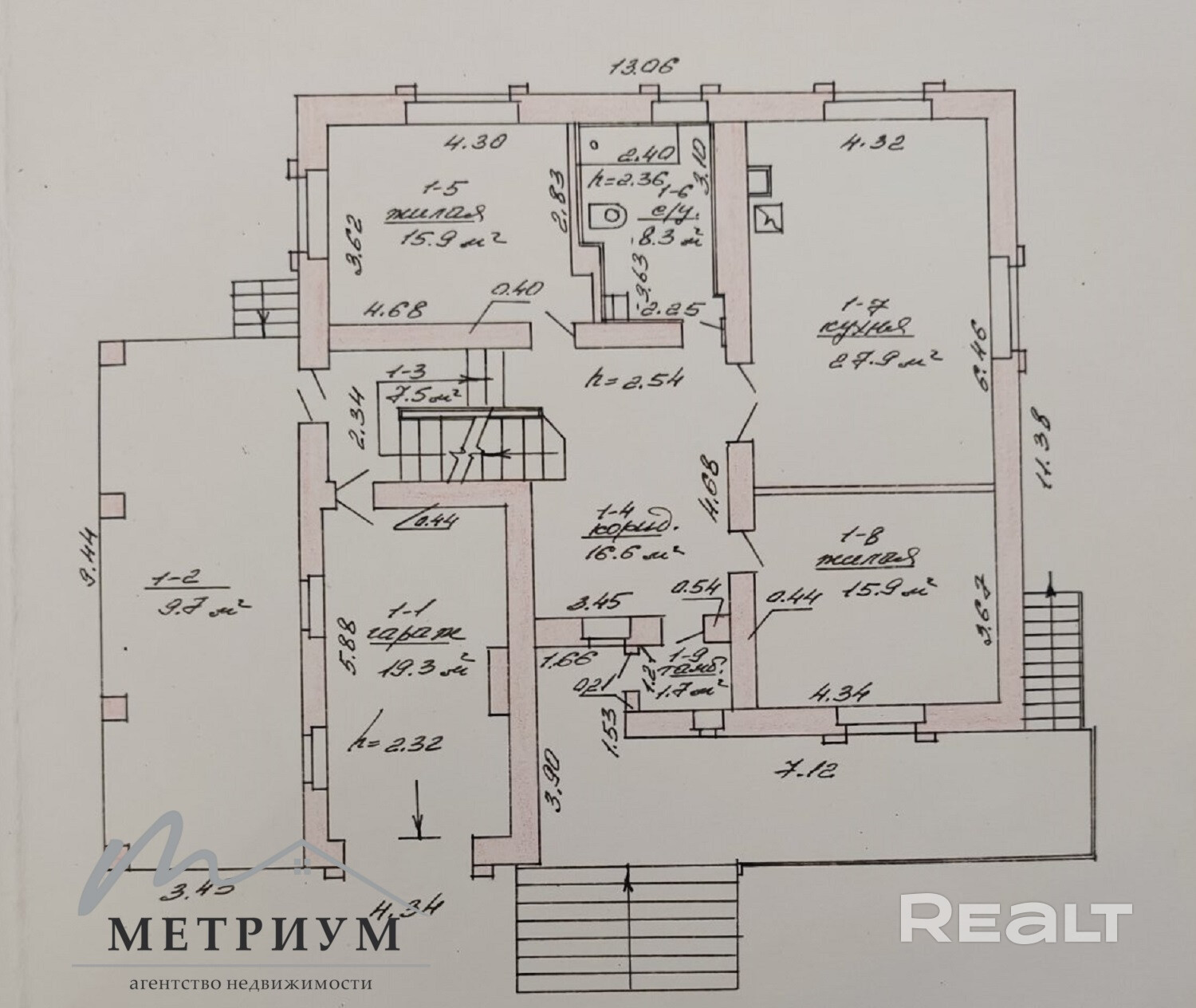 Общая площадь коттеджа 454,1 м2, жилая площадь – 159 м2, мансардный этаж 149 м2 с возможностью оборудования под жилые комнаты, просторная зона кухни-столовой – 27,9 м2, 5 жилых комнат, гостиная с камином 46,5 м2, расположена между первым и вторым этажом, высокие потолки и второй свет позволяют солнечному свету беспрепятственно проникать в жилое пространство и лучше освещать его изнутри. Установлены радиаторы с регулировкой температуры. В доме 3 санузла для комфортного проживания всех членов семьи. Выделена входная зона с системой хранения. Выполнен качественный ремонт. Пол – паркетная доска и ламинат.