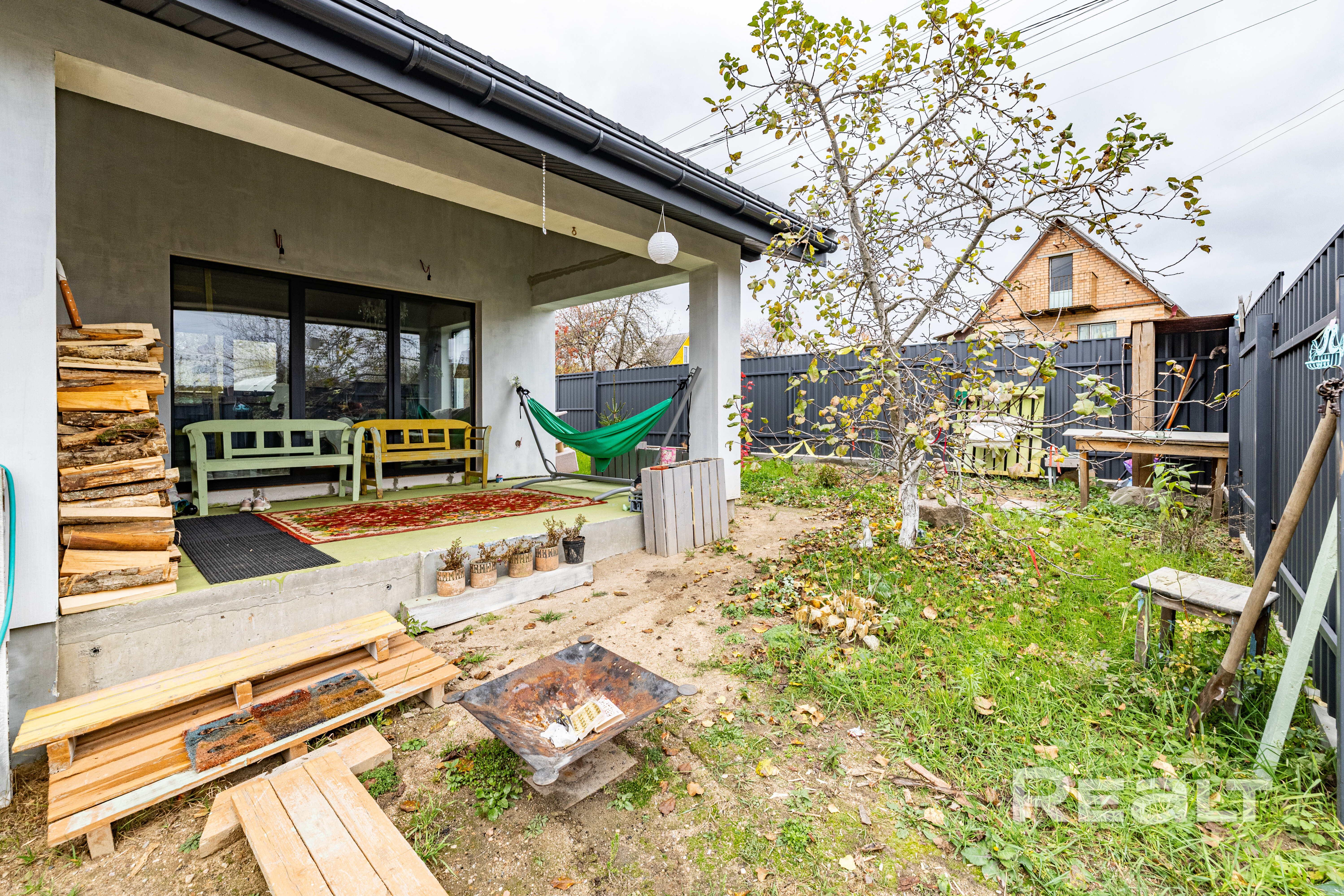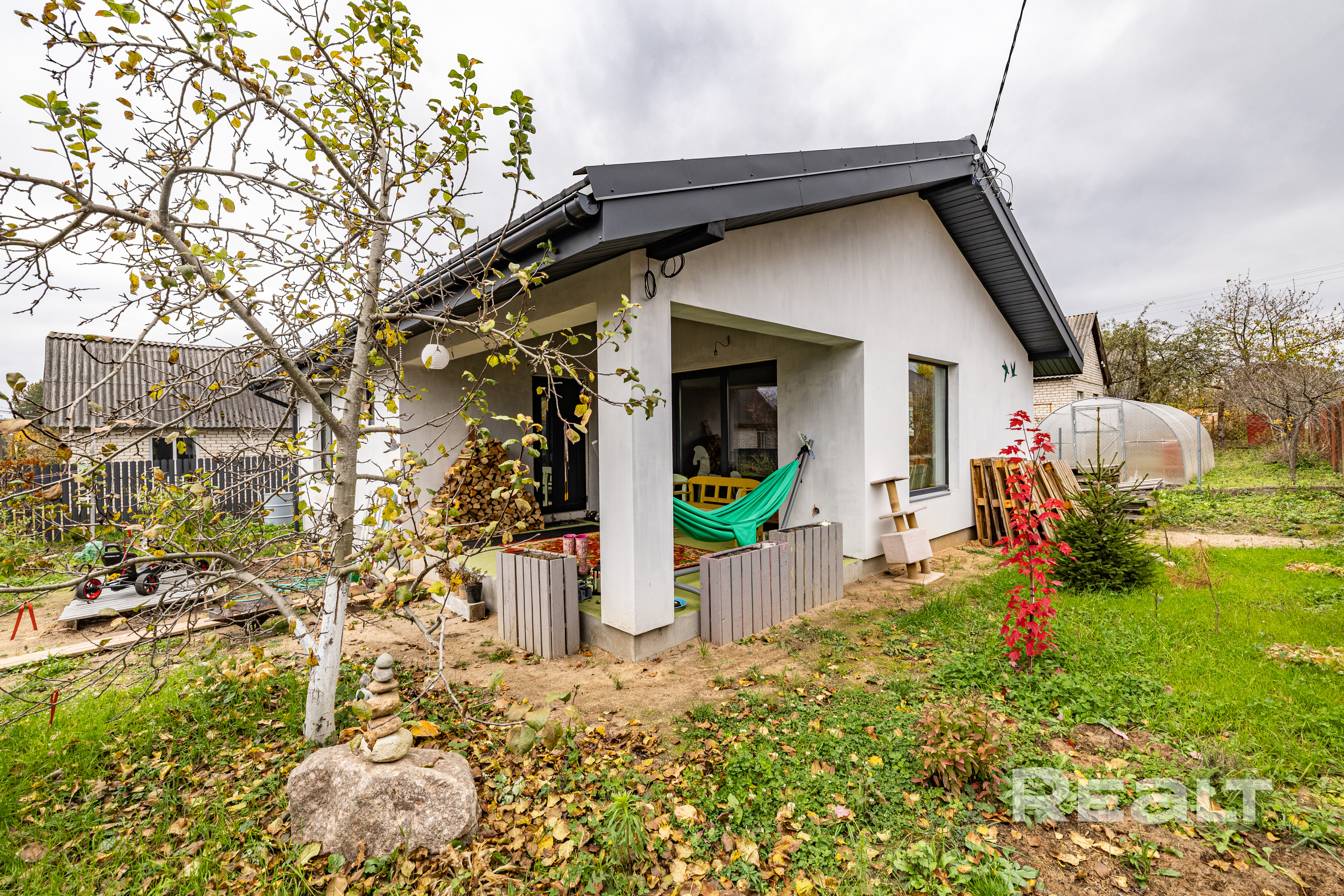 • Парковка на 2 автомобиля, зоны для барбекю, отдыха с качелями, цветники и грядки.
