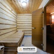 Застройка состоит из основного дома (13*11) с гаражом, погребом и уютной террасой с видом на восток, а также двухэтажного гостевого дома с панорамными окнами и баней (5.5*6).