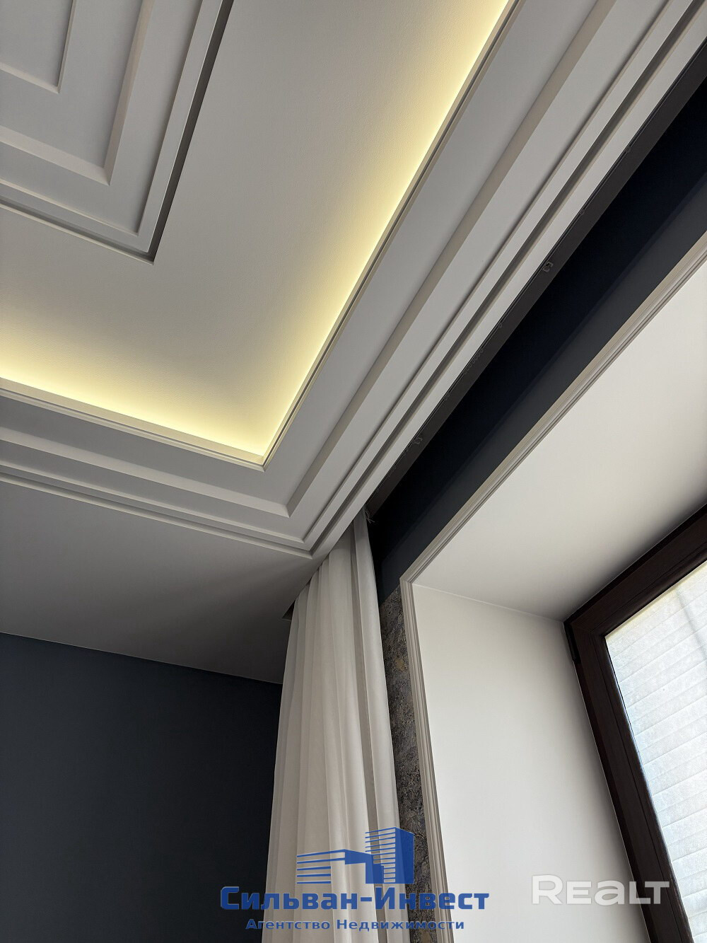 Многоуровневые акцентные потолки, исполнены качественно и со вкусом, гармонично подчёркнуты продуманной подсветкой.