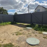 Ворота откатные с электроприводом, отрываются дистанционно с брелока. Калитка отдельно от ворот.