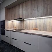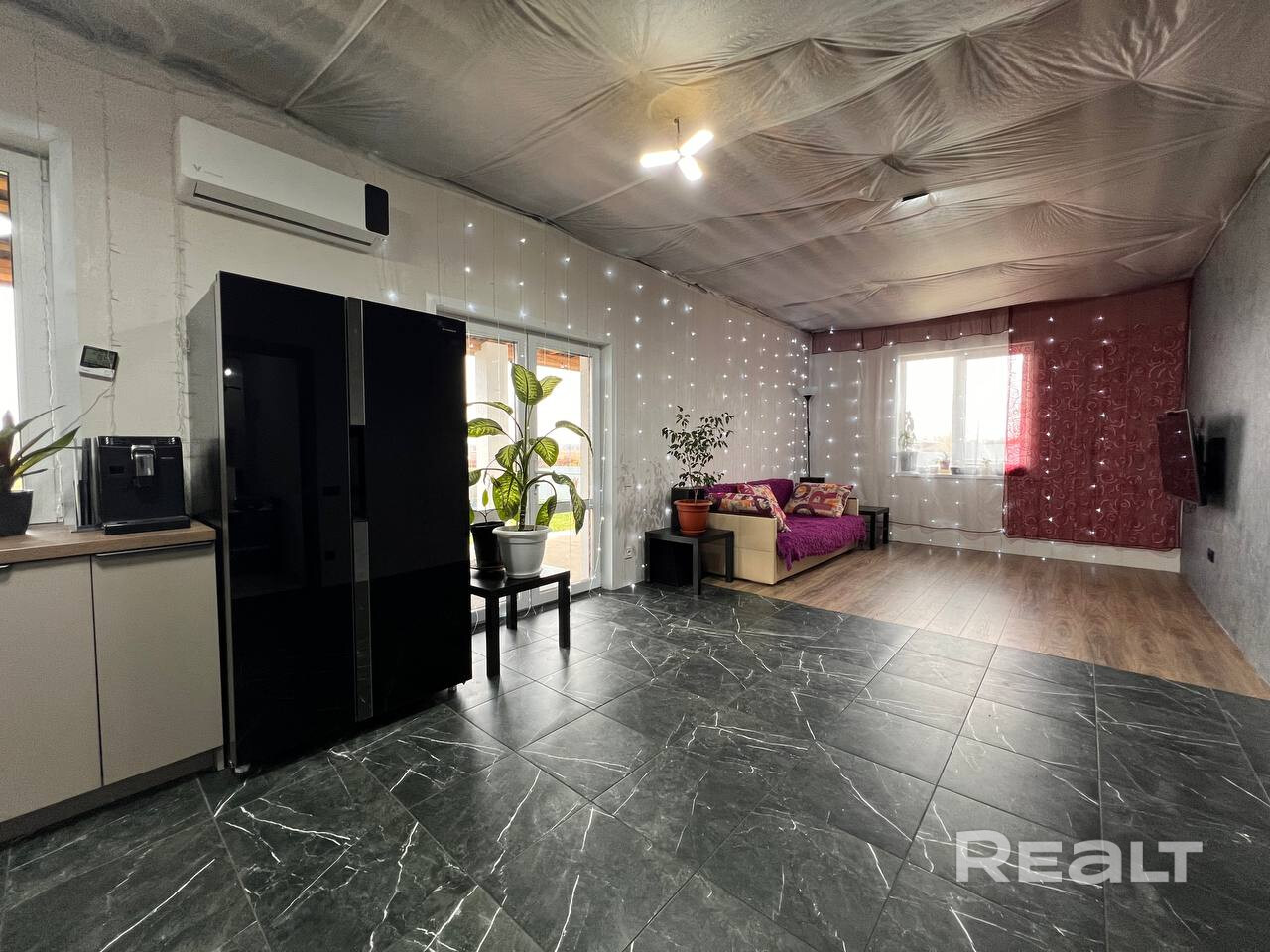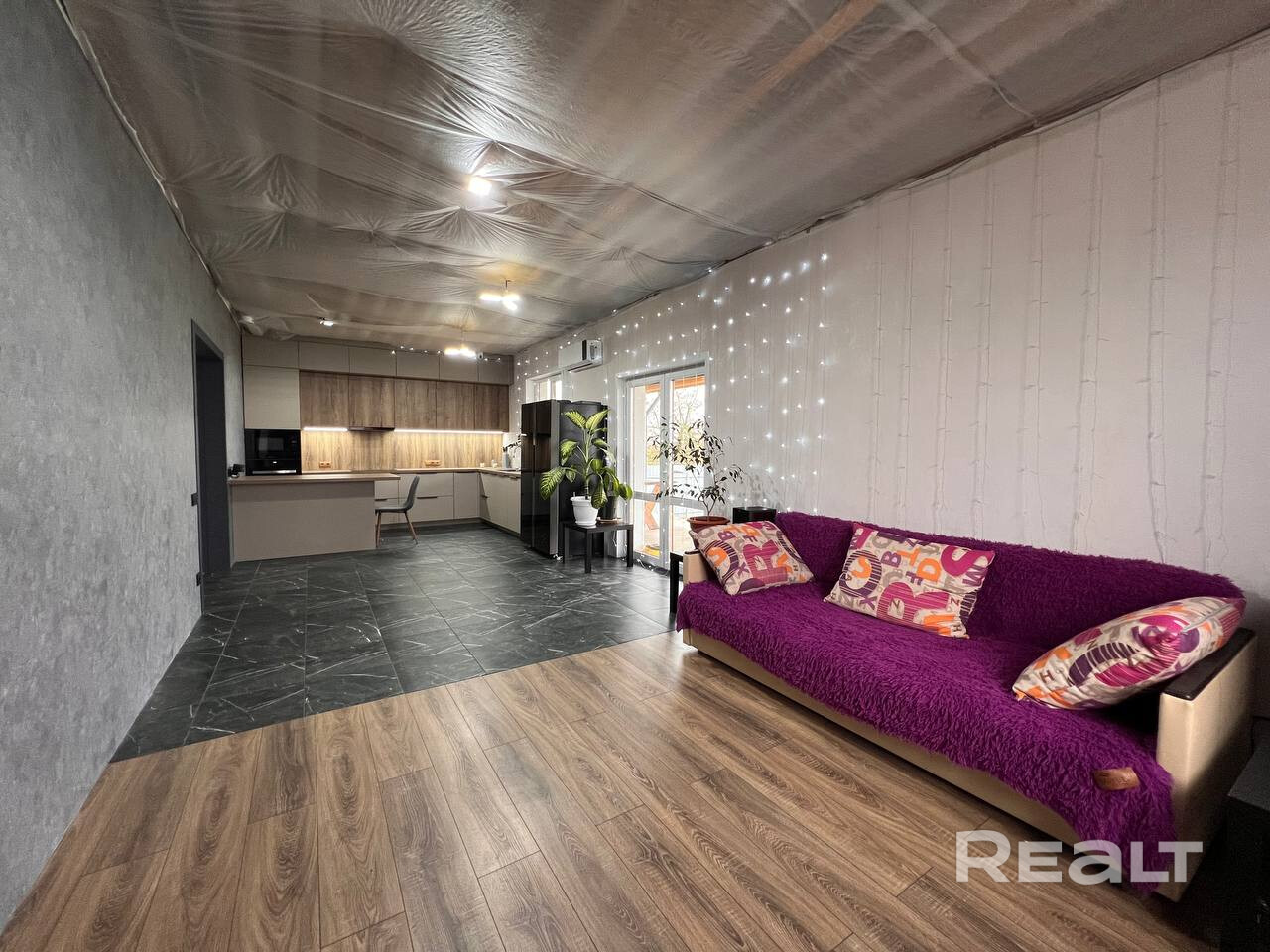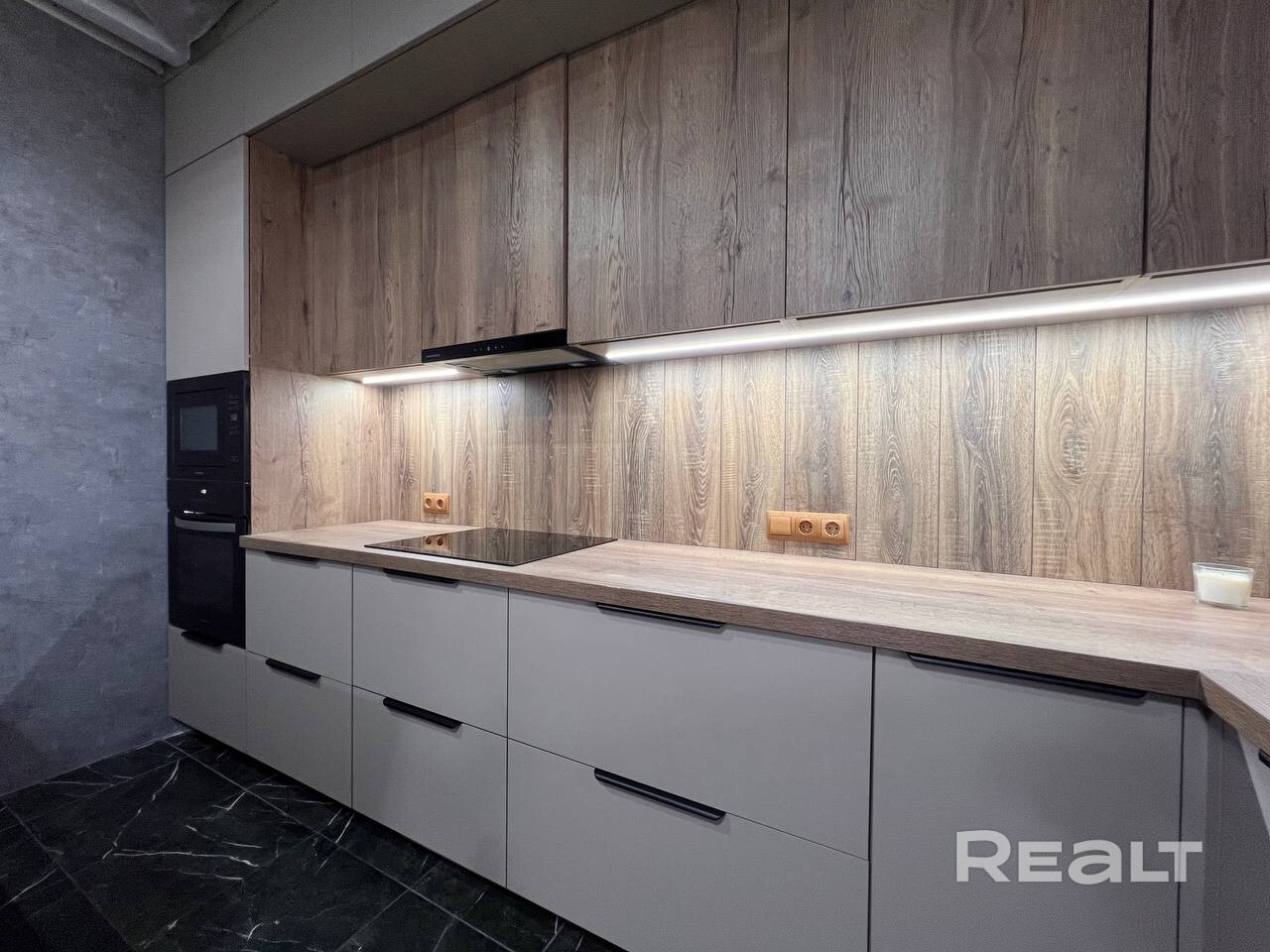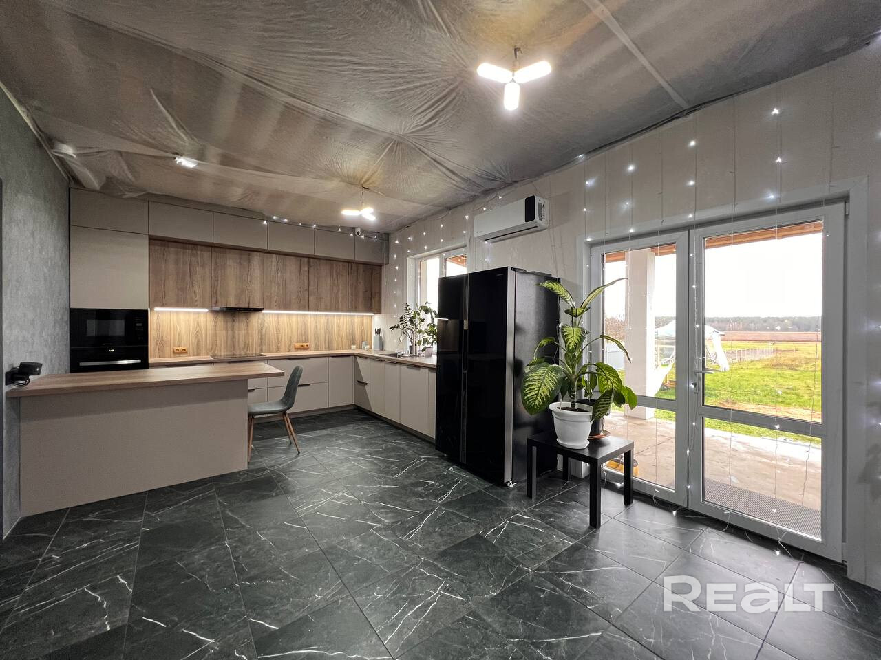 Кухня оборудована стильным гарнитуром с качественной фурнитурой и всей необходимой техникой, (индукционная варочная панель, духовой шкаф, встроенная микроволновая печь, посудомоечная машина, раковина со встроенным измельчителем, вытяжка, объемный двухкамерный холодильник). Установлена сплит система (кондиционер) для охлаждения и очистки воздуха в жару и подогрев в межотопительный период. Подключена система «умный дом с Алисой».