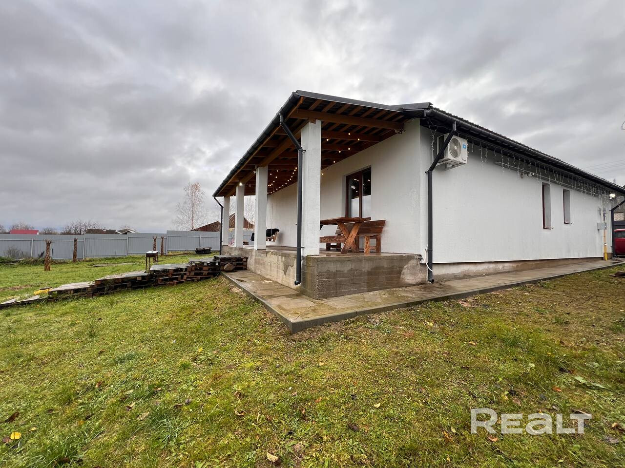 Дом одноэтажный, правильной формы, продуманной планировки с атмосферной террасой и выходом на задний двор.