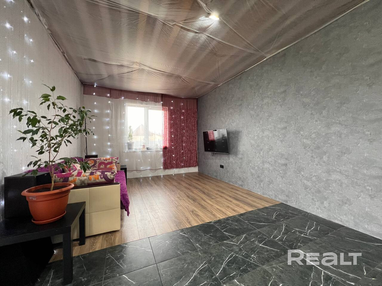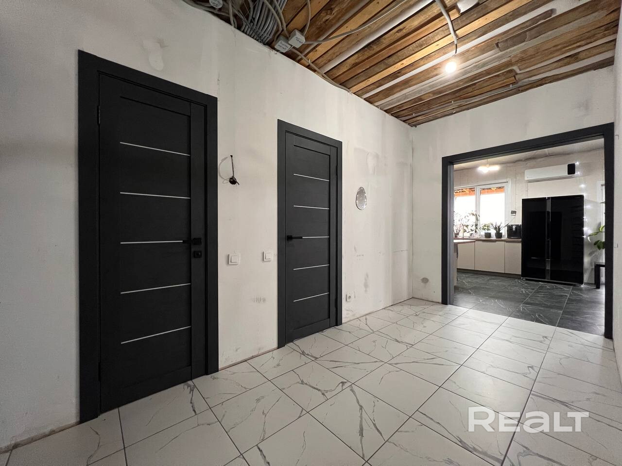 Потолки черновые, ждут вашего дизайнерского решения.