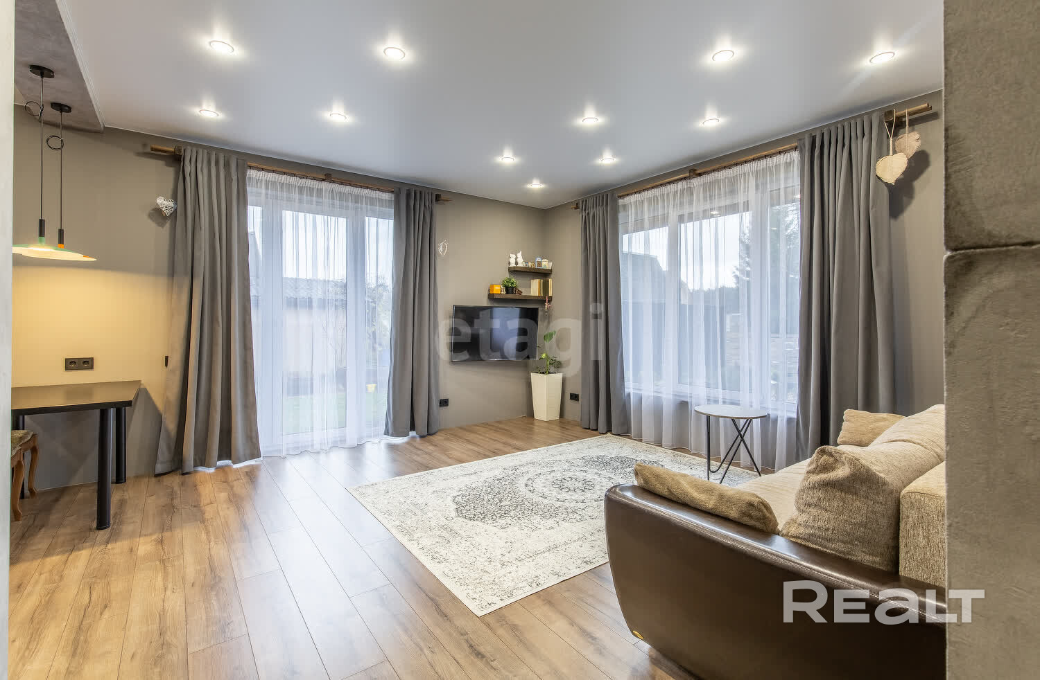 - Функциональная и компактная планировка: просторная кухня (11,0 кв.м.) совмещена с гостиной зоной – 20,7 кв.м, что создает гармоничное пространство для семейного общения. Три изолированные спальни удалены от общей зоны, что позволит уединиться и спокойно отдыхать. В хозяйской спальне имеется свой санузел и вместительная гардеробная. Также в доме есть второй санузел с душевой, котельная и подвал.