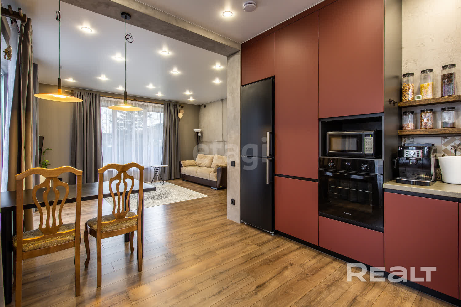 - Встроенная кухня со всей необходимой техникой – продуманное удобство для каждой хозяйки