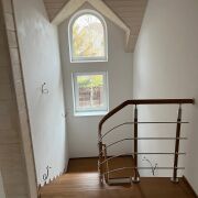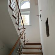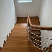 - Лестница монолитная, с отделкой из дуба — красиво и надолго.