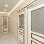 Межкомнатные двери в одном стиле – массив дерева, покрытый эмалью, изделия приобретают насыщенный роскошный цвет и вид, очень практичны в уходе.