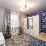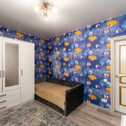 Отделка жилых комнат выполнена в светлых тонах.