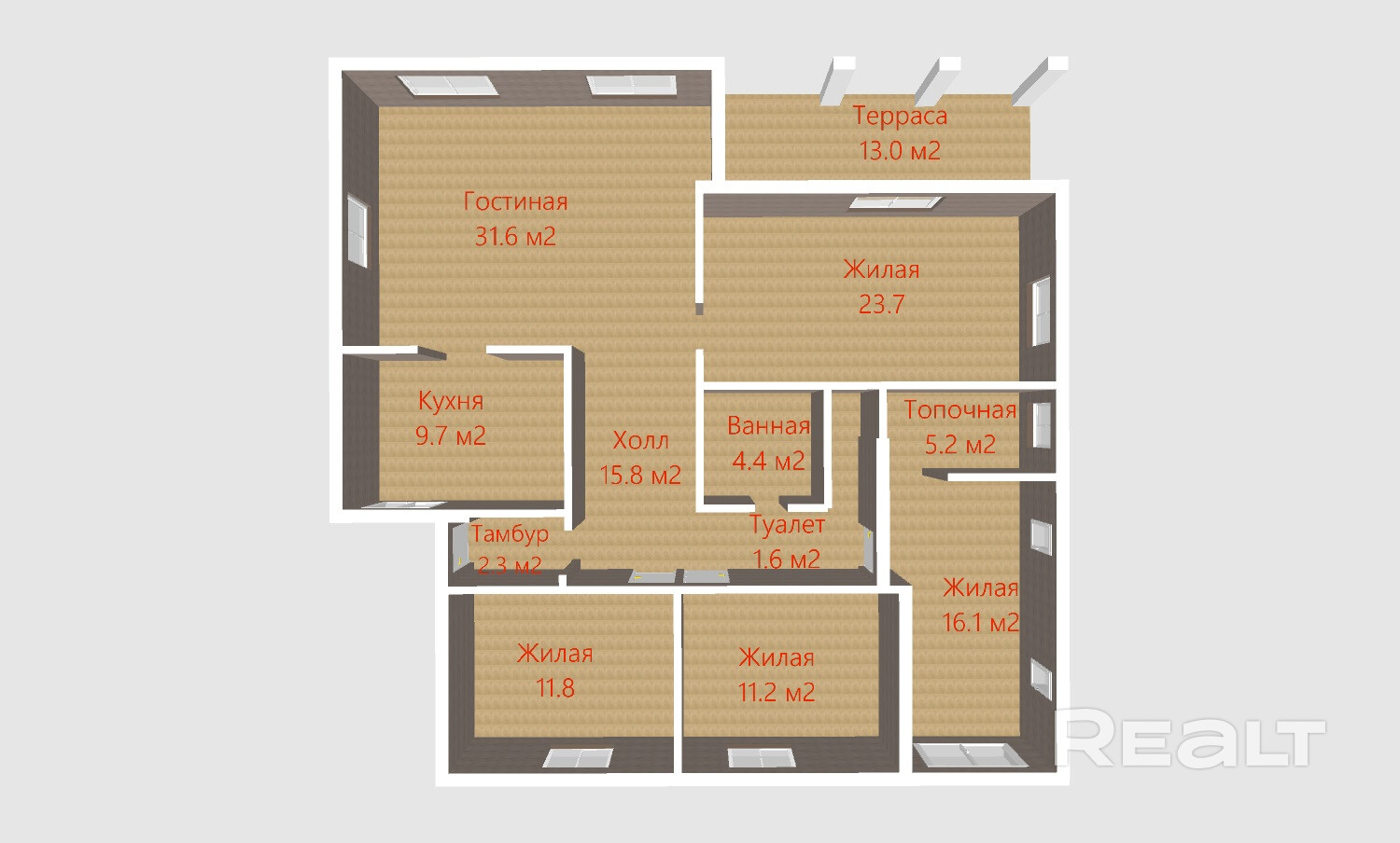 Общая площадь дома - 117.3 кв.м.