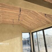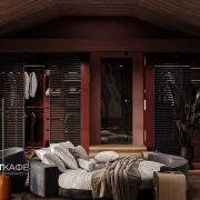 · Высота потолка в коньке — 4,8 метра, отделка термодеревом класса «Экстра».