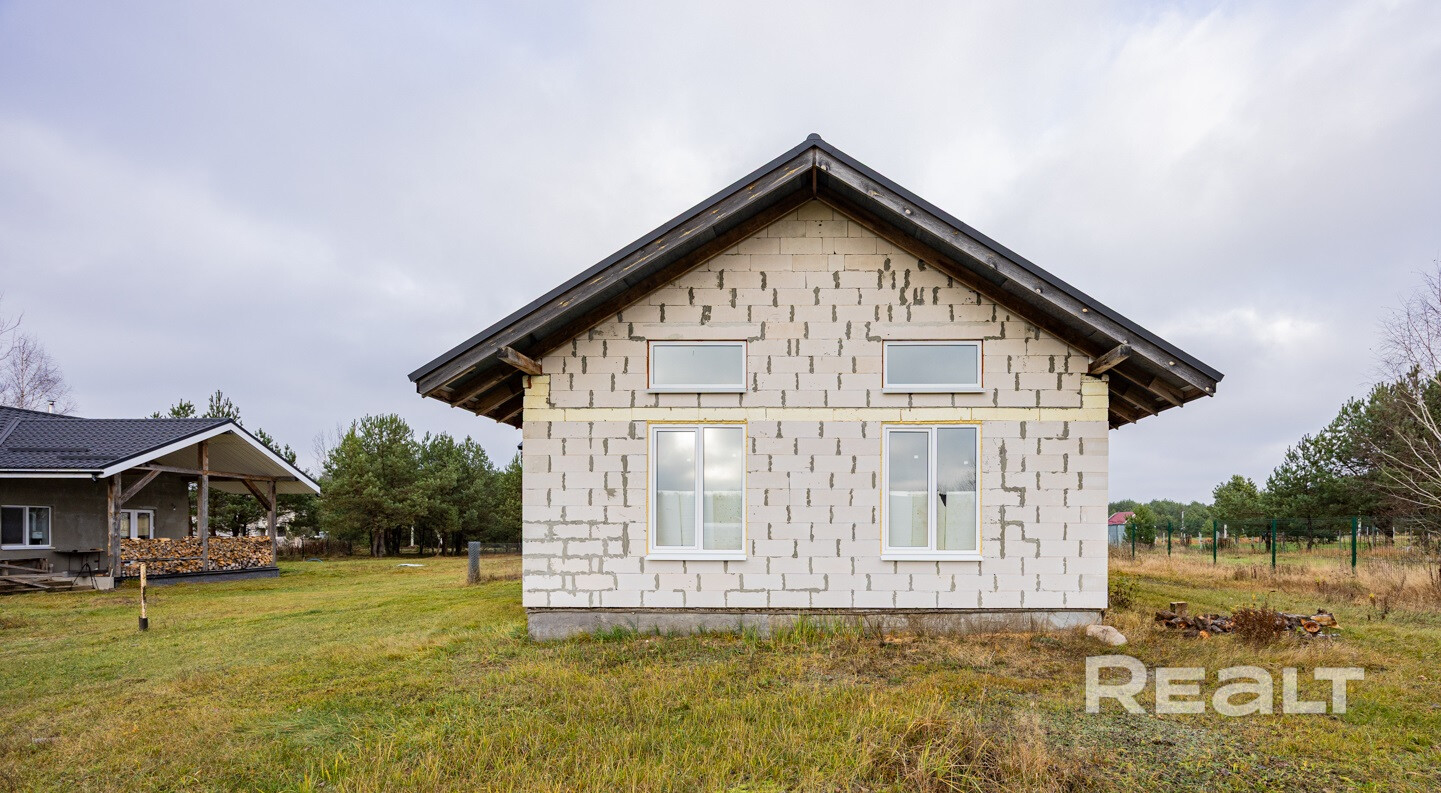 Наружные и внутренние стены дома без отделки. Высота подкровельного пространства позволяет обустройство второго этажа.