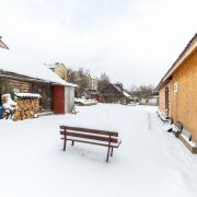 -На участке уже стоит бревенчатый дом общей площадью 79 кв.м. Дом с крышей из металлочерепицы и, главное, с центральным водоснабжением и центральной канализацией.