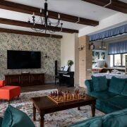 Этот двухуровневый дом площадью 358.3 квадратных метров воплощает в себе сочетание роскоши и уюта, выполненный в стиле кантри.