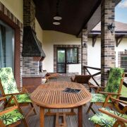 Здесь есть волейбольный корт и корт для большого тенниса, что позволит вам активно проводить время на свежем воздухе. Автополив газона обеспечит всегда ухоженный вид территории, а плодовые деревья и кусты добавят уюта и красоты вашему участку. Особое внимание заслуживает аллея вдоль водоёма, расположенная рядом с домом.