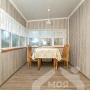 - Дом общей площадью 57,6 кв.м с жилой площадью 26,5 кв.м и кухней 12,8 кв.м. Планировка одноуровневая, дом бревенчатый. В составе дома есть утепленная веранда, которая используется как кухня-столовая, что позволяет рационально задействовать пространство и разделить жилую и хозяйственную зоны.