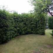 *По периметру участка высажены туи, представляя собой живую изгородь и создавая дополнительный уют и приватность.
