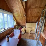 - На втором мансардном этаже одна большая комната- спальня и место для отдыха у окна с прекрасным видом на лес и природу.