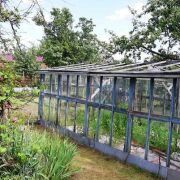 Участок ровный, благоустроен, огорожен. Плодовые деревья, виноград, кусты, газон.