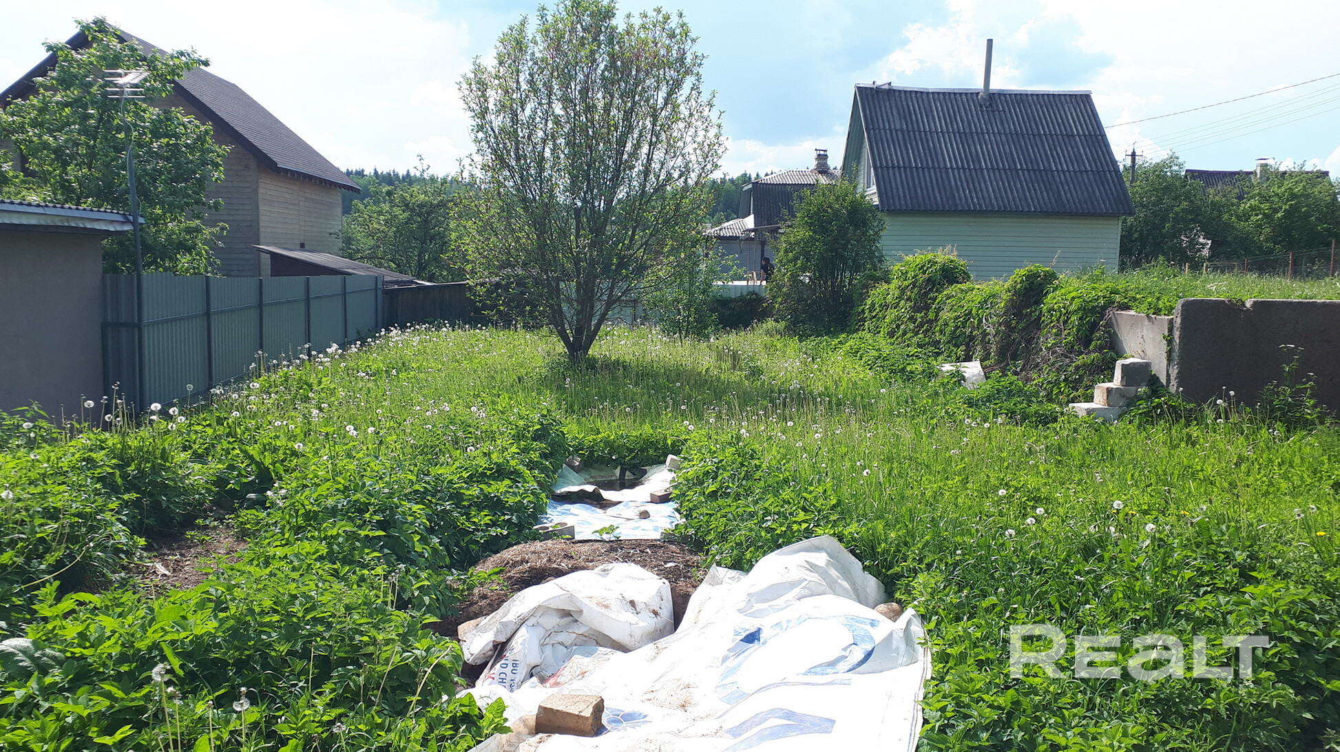 Дачный участок (6 соток, в собственности, ПО ДОКУМЕНТАМ - УЧАСТОК) с незавершённым домом (в два уровня в садовом товариществе «Магистраль-2» (7 минут пешком от ж.д. станции (ОП «Пралески», Молодечненское направление, 40 км от МКАД). Размер дома по фундаменту 7х8м. Стены – газосиликатные блоки, фундамент – ж/б плиты. Состояние – без внутренней отделки. Под всем домом высокий сухой и проветриваемый подвал-гараж, в планировке можно сделать баню или обустроить подсобн. помещения. Участок 2-уровневый