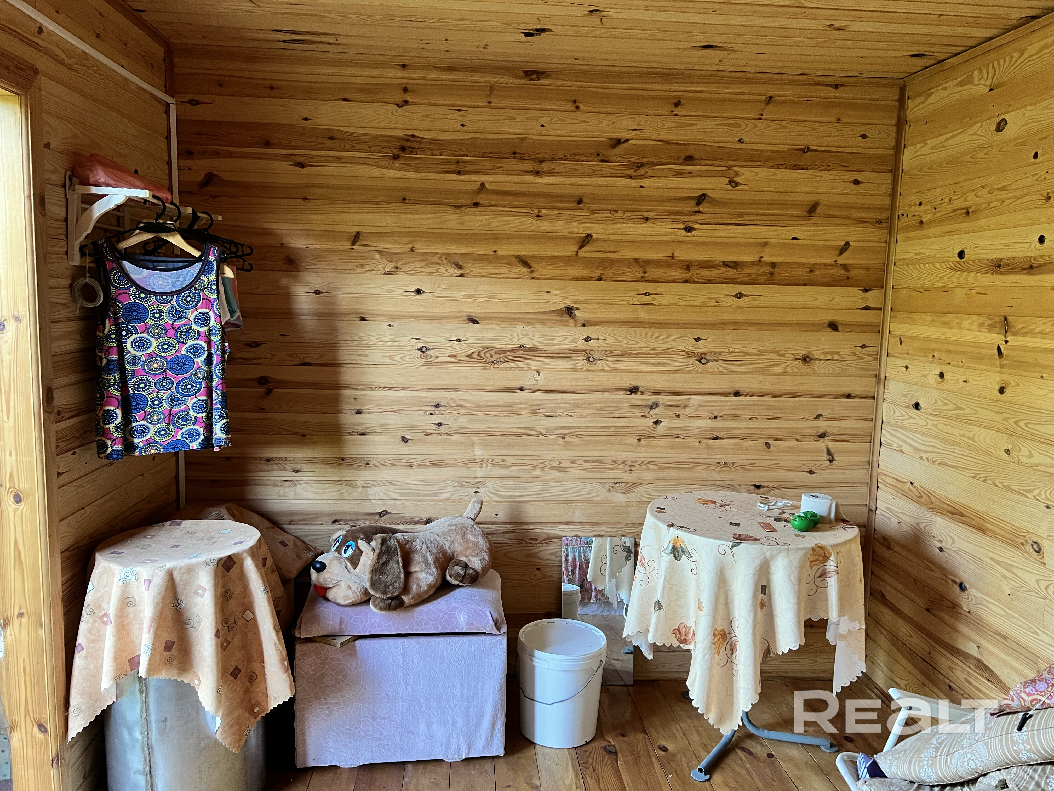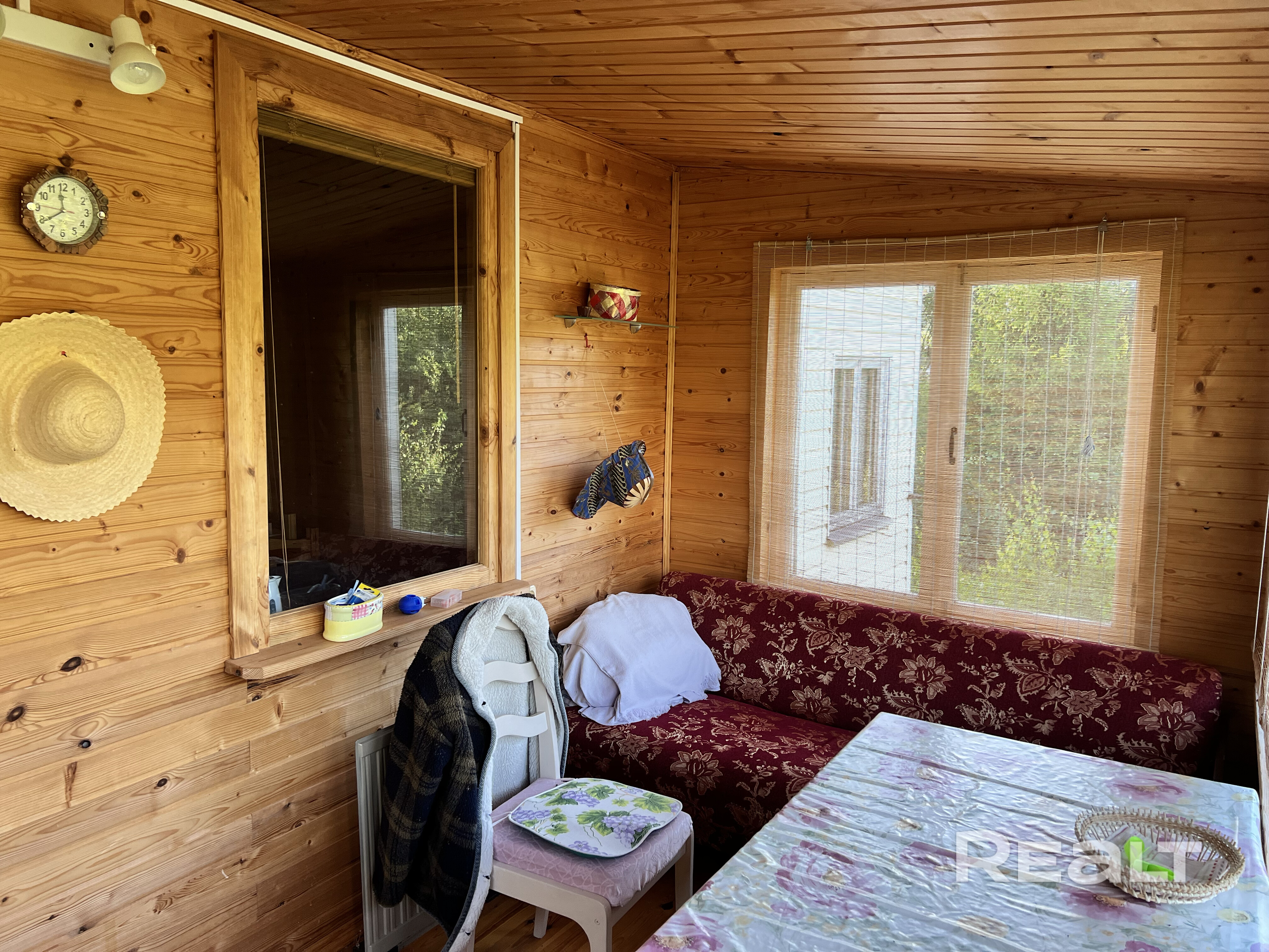 Садовый домик с большим участком, соседи только через дорогу. Домик теплый, сухой, отделка вагонкой. Есть отдельная комната с отдельным входом. Под ней закрытая ниша для хранения дров и хозинвентаря. В доме есть погреб. Участок с уклоном вниз. Участок огорожен забором из сетки-рябицы. Проведено электричество. Отсутствует вода на участке, все соседи делают индивидуальные скважины. Уникальная возможность приобрести большой участок в 30 мин от центра Минска.