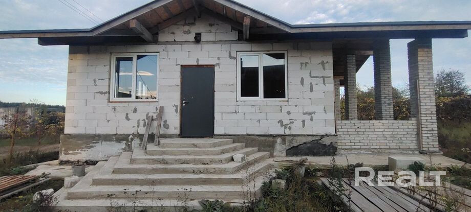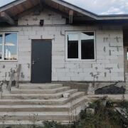 На ровном и крайнем участке площадью в 6,14 сотки построен дом (94 кв.м) с цокольным этажом и террасой. Есть местная канализация, заведена в дом. В доме - свободная планировка. Два выхода - парадный и на террасу. Терраса - на южной стороне под общей крышей с домом, где организовано панорамное остекление.