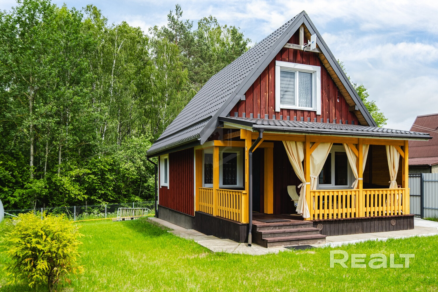 Продаётся тёплый и уютный дачный домик в скандинавском стиле — деревянный, с черепичной крышей, как из волшебной книги. Расположен в живописном садоводческом товариществе всего в 40 минутах езды от Минской кольцевой дороги. А дорога к даче — отдельное наслаждение: она ведёт через дубовую аллею и лес, словно из сказки.