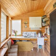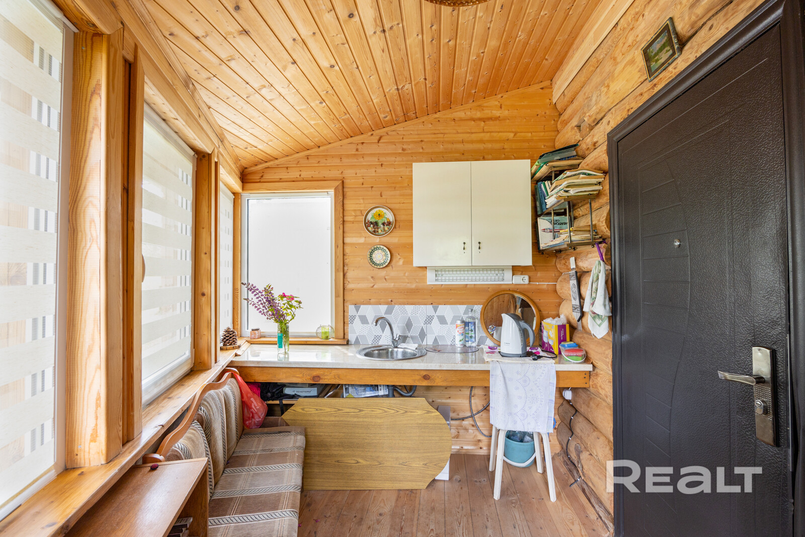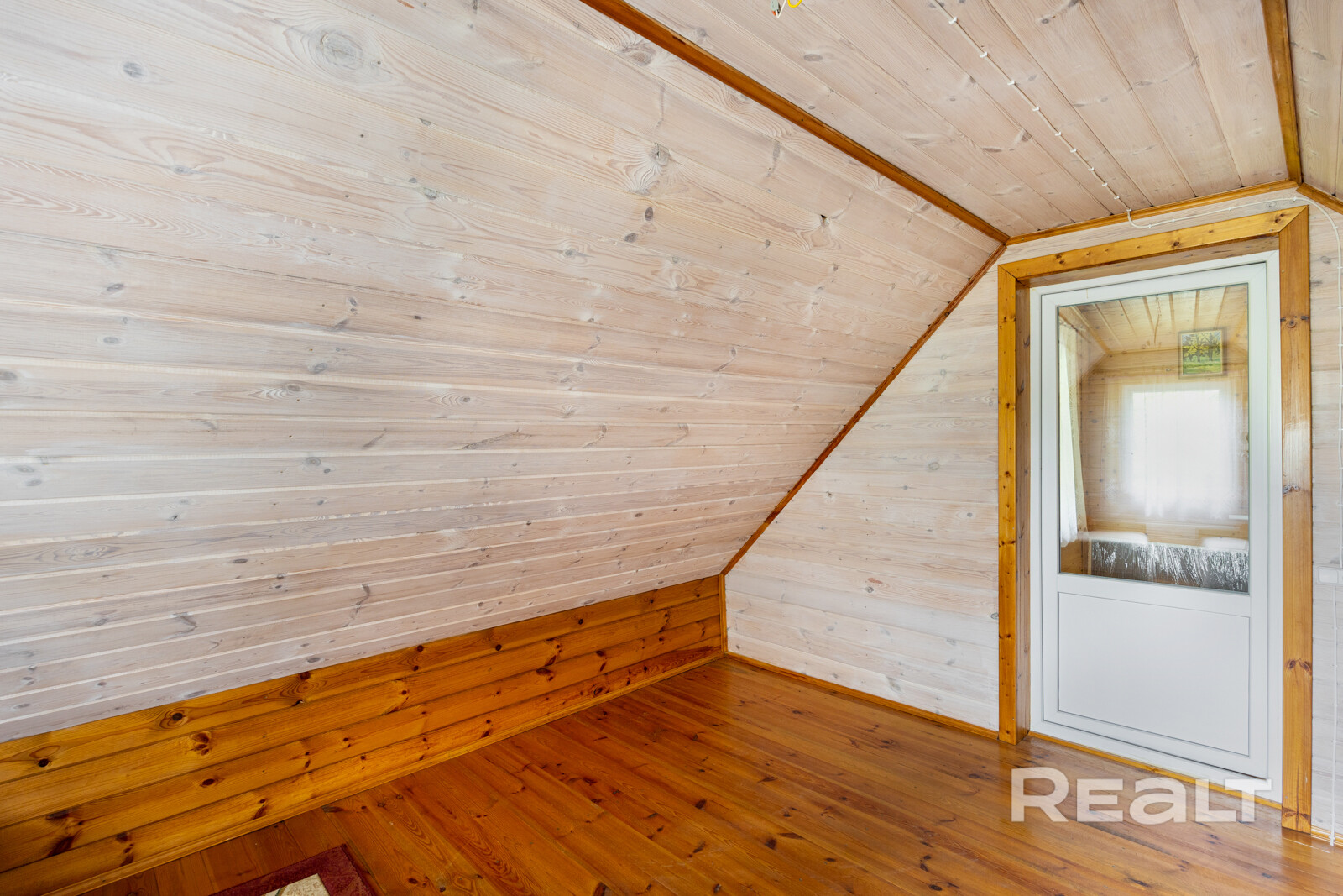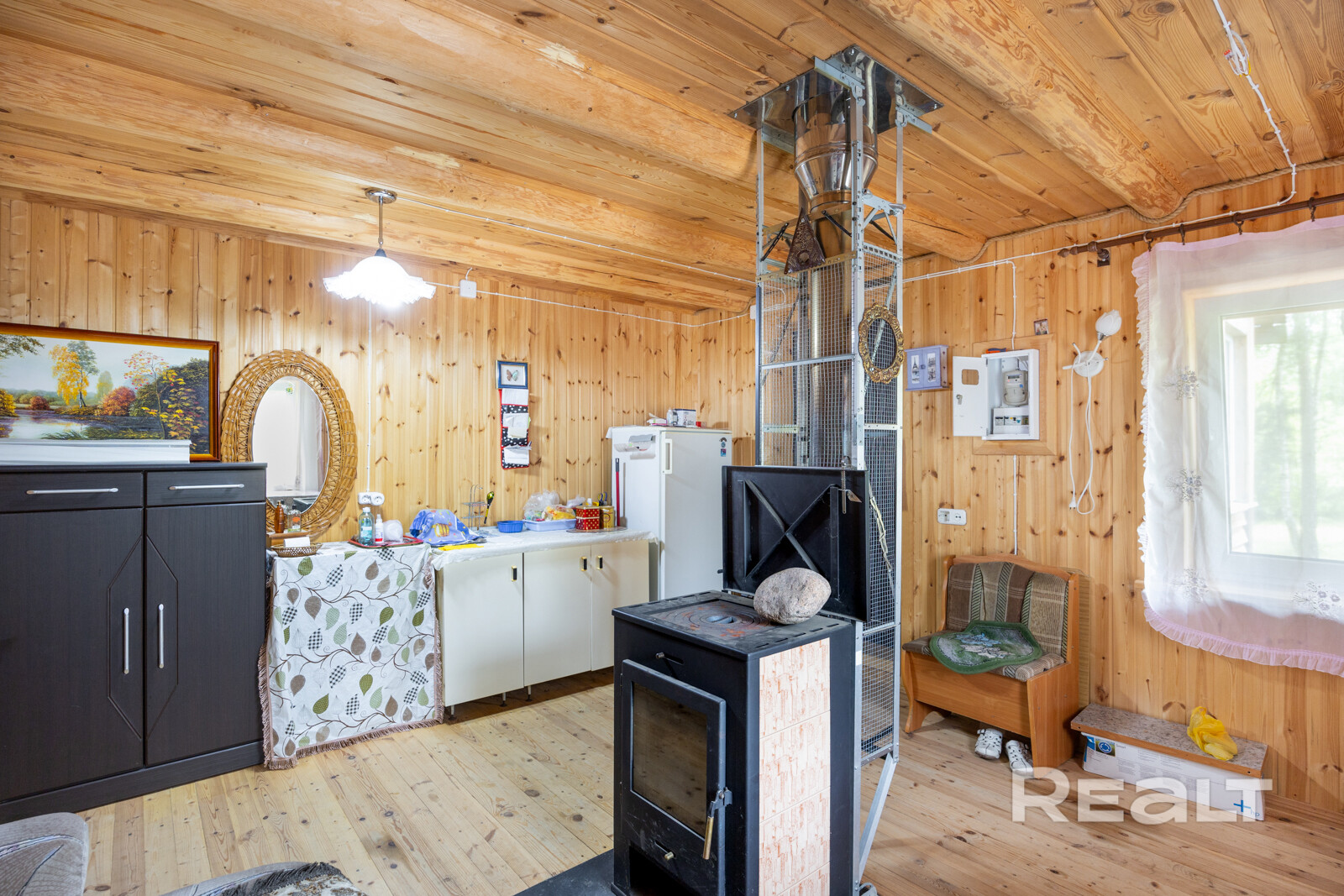 На участке 6 соток расположен бревенчатый дом 2005 года постройки (51.1 м2). Крепкий бетонный фундамент, шиферная крыша и уютное печное отопление. В доме один этаж и мансарда, где можно обустроить спальню или игровую комнату. Вода сезонная, канализация – яма.