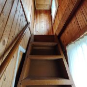На стенах вагонка и обои, пол доска, потолок декоративная доска. Межкомнатные двери деревянные.