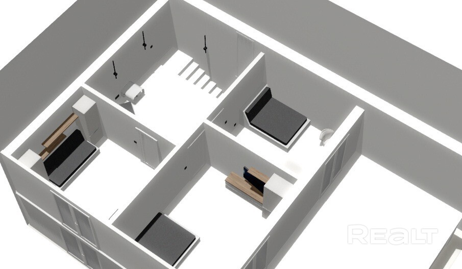 Дом представляет из себя блочное двухэтажное строение с терассой. На первом этаже расположены сан.узлы, кухня-гостиная, котельная, на втором – холл, 3 спальни. На втором этаже сделаны черновые полы, потолки, проведено отопление. Из коммуникаций: вода скважина, электричество, канализация местная, отопление. Товарищество газофицировано, газ - по улице.