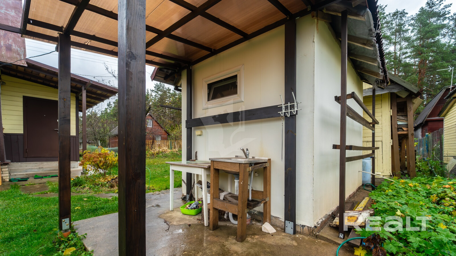 Коммуникации: свет, вода сезонная, туалет на улице, в 100 м от дома имеется колонка с чистой питьевой водой. Земельный участок 5 соток, разработанный, благоустроенный огорожен сеткой-рабицей. Участок благоустроен: разбита клумба, грядки, на участке растут плодовые деревья, ягодные кусты. На дворовой территории имеется сарай для садового инвентаря, уличный туалет, душ. Недалеко от дома - сосновый лес.