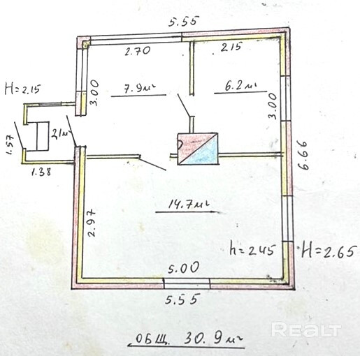 30.9 м²