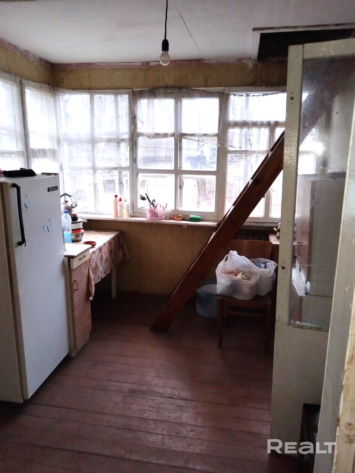 В доме на первом этаже кухня и две жилые комнаты. Второй этаж в стадии ремонта.