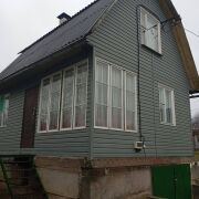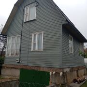 Дом обшит сайдингом нежно-зеленого цвета. Вода с электроподогревом (заведена в дом), газ плита, печь (используется как обогрев, также можно в ней готовить) ,электричество (новая проводка), газовый обогреватель.
