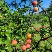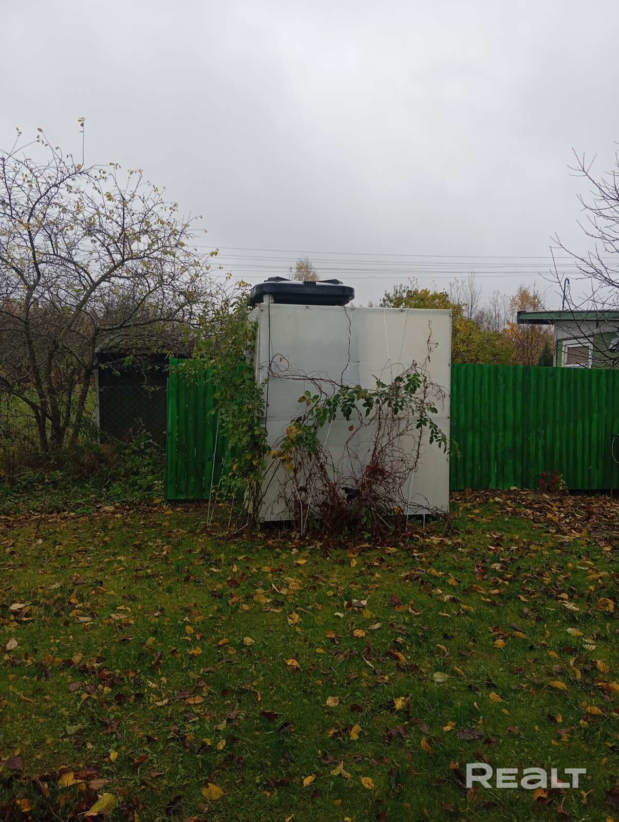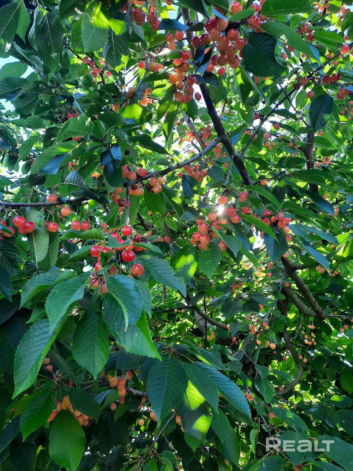 На участке растут плодовые деревья: черешня, слива, яблони, кусты голубики и смородины. Симпатичные туи, высаженные вдоль забора.