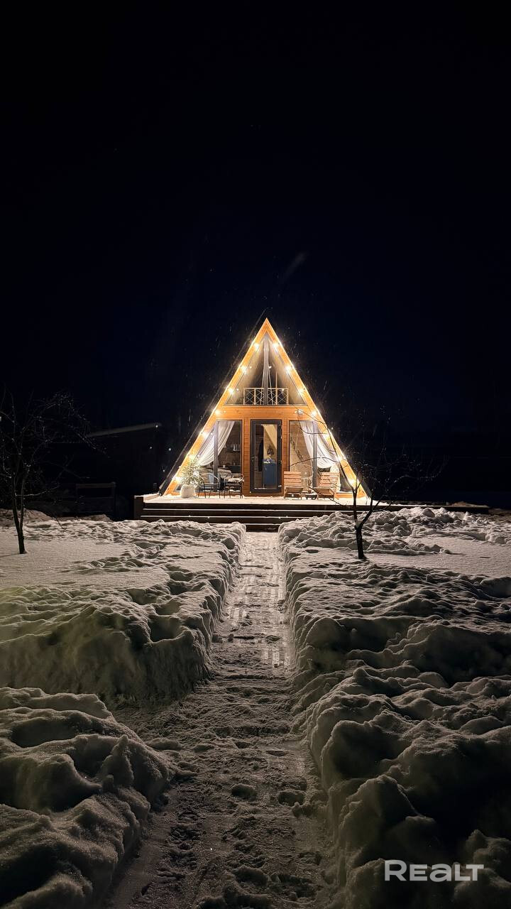 Продается стильный дом A-frame в скандинавском стиле. Дом полностью оборудован для круглогодичного проживания: электрической техникой, посудой, постельный бельем и т.д. Теплый пол от компании ddcompany.by. Скважина, септик KANN. Беседка, зона барбекю и костровая зона. Просторный огороженный участок 10 соток, за участком протекает река Плиса, есть возможность организовать собственный проход к реке. 100% готовность, заезжай и живи! Крайний участок. Реальному покупателю хороший торг.