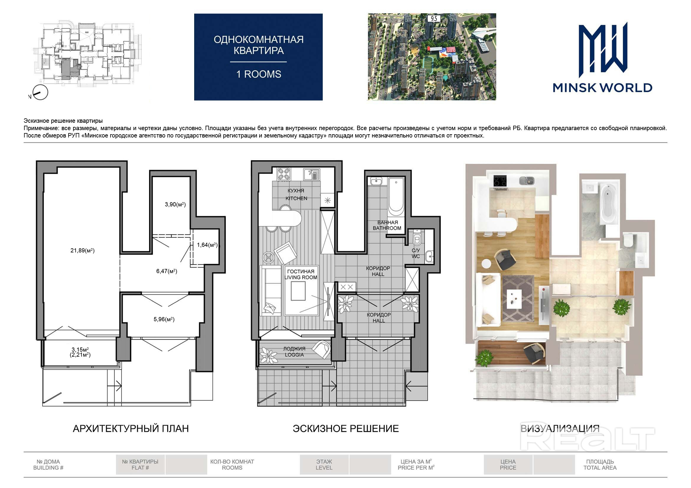 Квартира 1 в Минск Мир / Дом 9.5, площадью 46 кв.м.