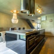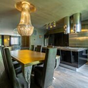 2-ой уровень – просторная кухня-столовая, оборудованная всей необходимой бытовой техникой. Присутствует даже винный шкаф) И не менее впечатляют размеры гостиной, которая имеет выход на балкон.