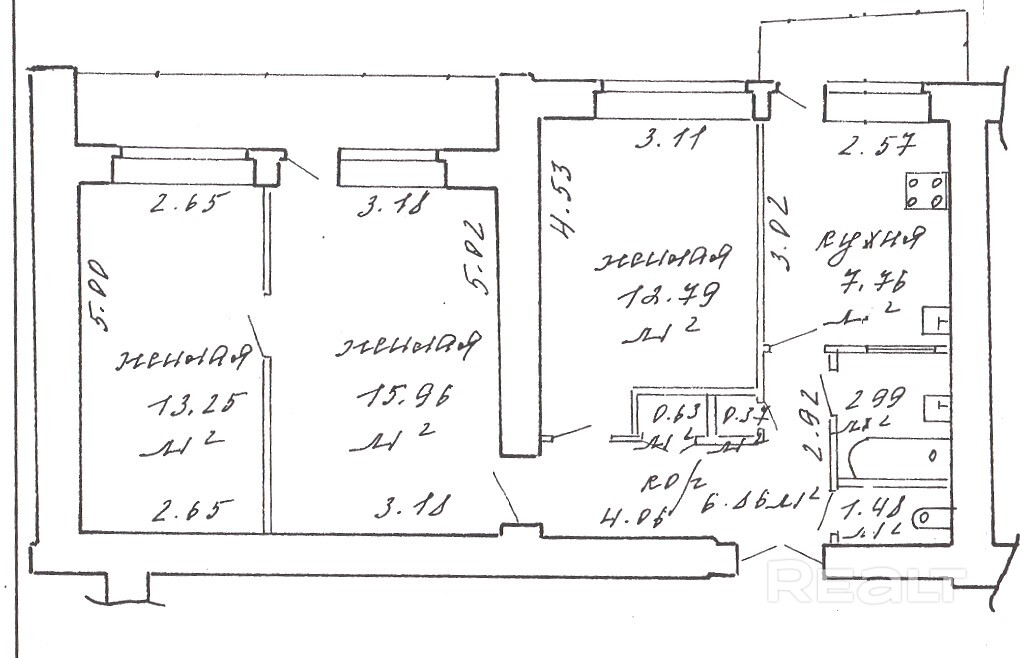 Площадь квартиры по СНБ 65,6 метров квадратных. В жилых комнатах натуральный дубовый паркет в хорошем состоянии, на кухне-ламинат, в ванной и санузле плитка. Лоджия и балкон застеклены.