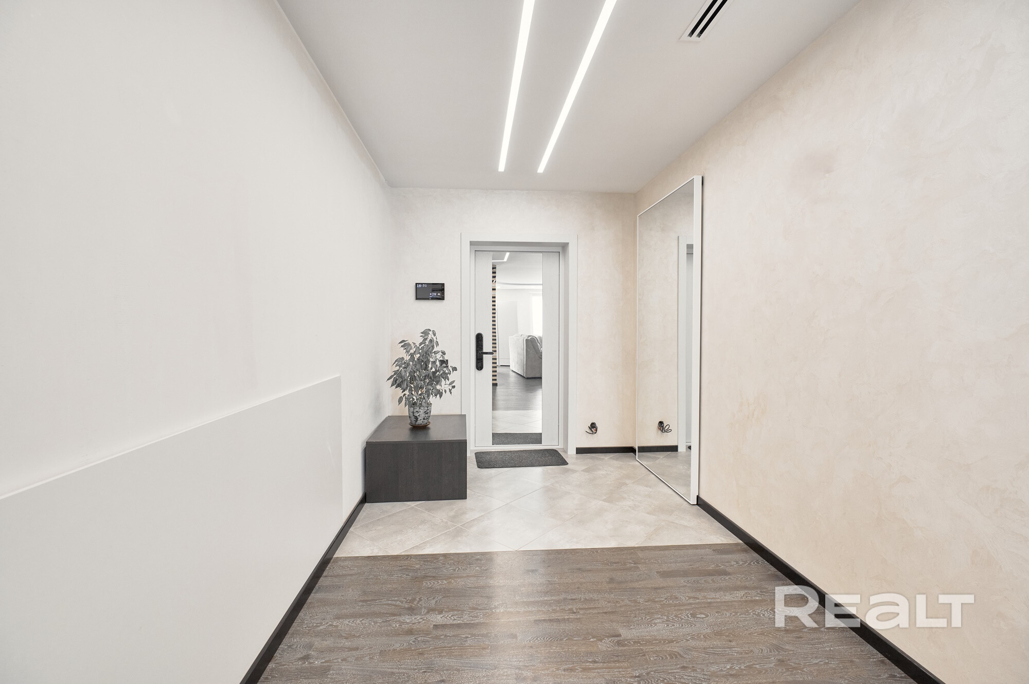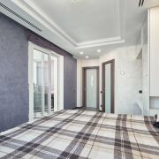 Полы в гостиной, спальне, детской и частично в прихожей паркетная доска из дуба. В санузлах, кухонной зоне и частично в прихожей уложена итальянская плитка с подогревом и энергоэффективными регуляторами.