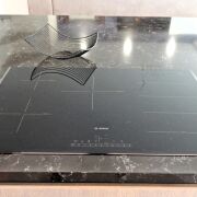Встроенная кухня из шпона, вся гарнитура Blum. Бытовая техника премиум класса. Индукционная варочная панель Bosh (6 конфорок), духовой шкаф Bosh c функцией СВЧ, посудомоечная машина Mile, встроенная кофемашина Бренда Mile, встроенный холодильник из акрила side by side "Liebherr", стиральная машина Mile. Столешница из кварцевого камня (производитель Belenco spa Black). Мойка бренда BLANCO. Телевизор Samsung .