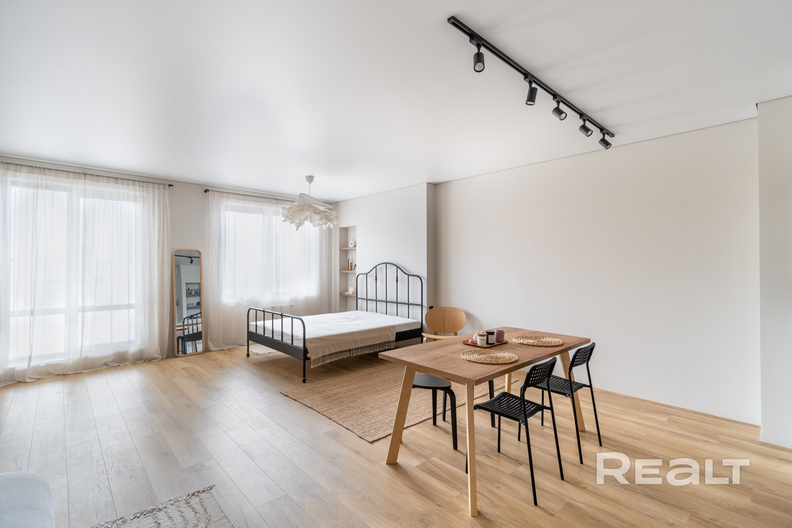 Современная студия вцентре города с хорошо развитой инфраструктурой и наличием зеленых зон для отдыха и прогулок.