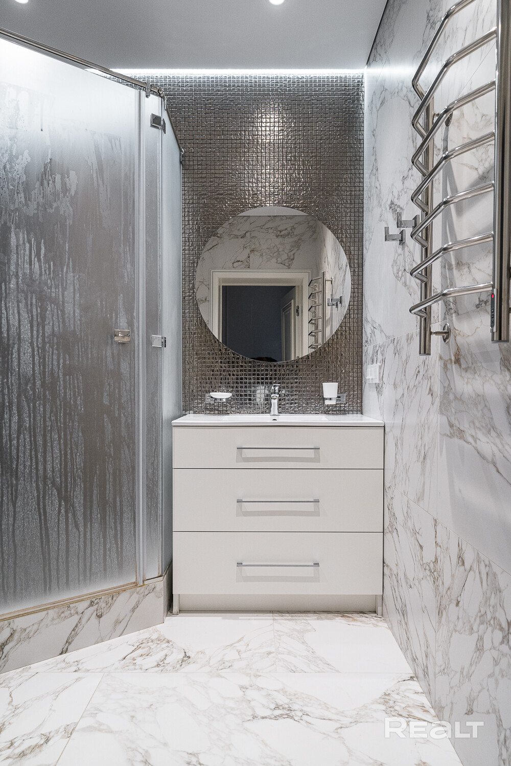 Продуманное пространства квартиры с кухонной, обеденной и гостевой зонами, а также отдельными спальней и детской. Два санузла (для тех, кто привык жить в быстром темпе – санузел с душевой кабиной, кто, наоборот, любит размеренность – санузел с ванной), две гардеробных и постирочная
