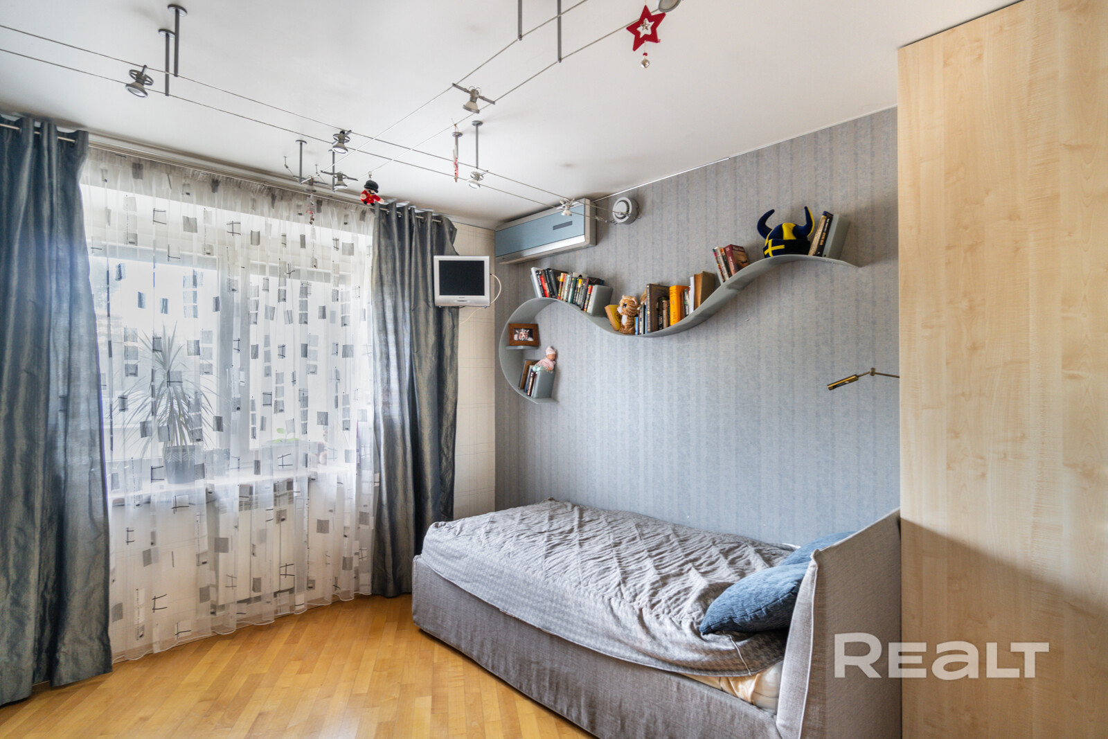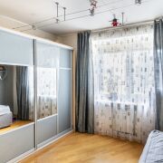 Просторная спальня с гардеробной предлагает вам комфорт и порядок, окна выходят на две стороны.